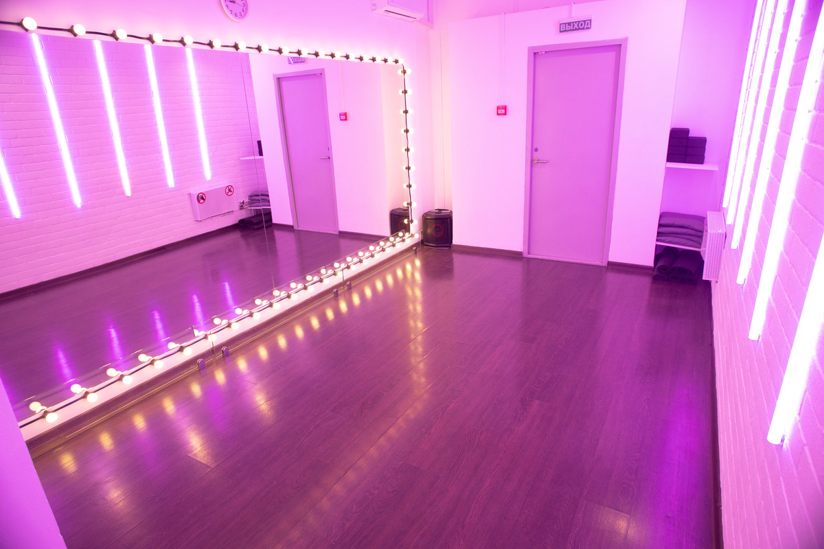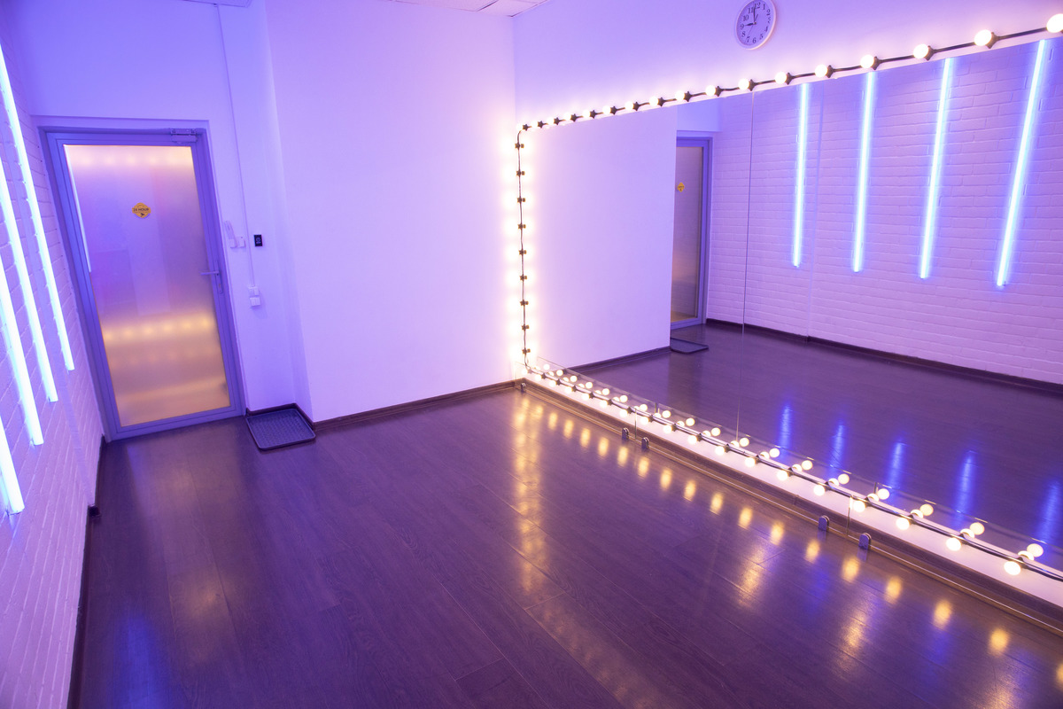 Прямоугольный зал с зеркальной стеной, высота потолка 2.5м. Инструкция по подключению bluetooth на колонке. Потолочное освещение управляется клавишами расположенными при входе. Подсветка зеркал управляется клавишей за музыкальным центром. Кондиционер управляется пультом. Скользящее покрытие пола. Комфортная вместимость 4 человека, 7 и более человек доплата +50р за 1 человека/час. Максимально 10 человек. Бонусы: 15% при бронировании в день занятия, 5-20% накопительный бонус постоянным клиентам. Адрес: м. Бауманская Бакунинская ул. 17/28